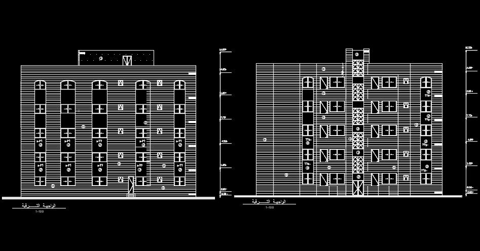 The left side elevation view of the 18x15m house building is given in this AutoCAD file. Two houses are available on this plan. The kitchen, living room, master bedroom with attached toilet, kid’s room, guest room, and common bathroom are available. For more details download the AutoCAD drawing file for free.