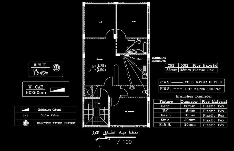 The sanitary layout of the 8x15m house plan has been given in this AutoCAD drawing model. This is G+ 2 house building. The living room, kitchen, master bedroom with attached toilet, guest room, kid’s room, and common bathroom are available. For more details download the AutoCAD drawing file for free.