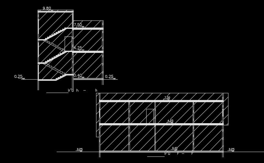The section view of the 19x13m house building is given in this AutoCAD drawing model. The living room, kitchen, master bedroom with attached toilet, and common bathroom are available in each house. Two houses are available on this plan. For more details download the AutoCAD drawing file for free.