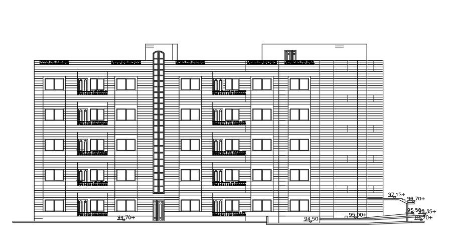 Front Elevation Of 38x30 Meter Apartment DWG File Download