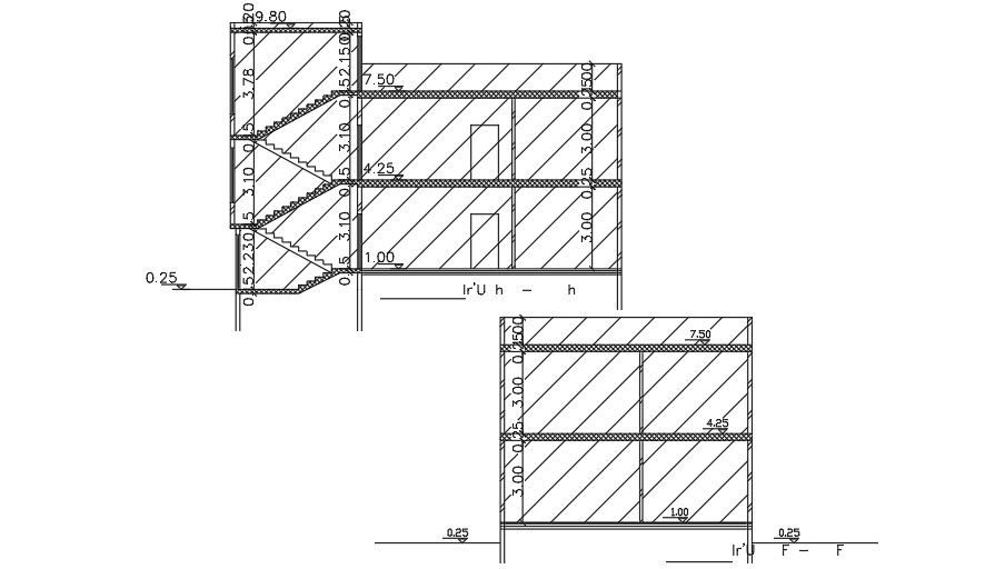 The front section view of the 38x30m apartment building is given in this AutoCAD file. This is G+ 2 house building. This house consists of a master bedroom with the attached toilet, kid’s room, kitchen, dining area, guest room, and common bathroom are available. For more details download the file for free.