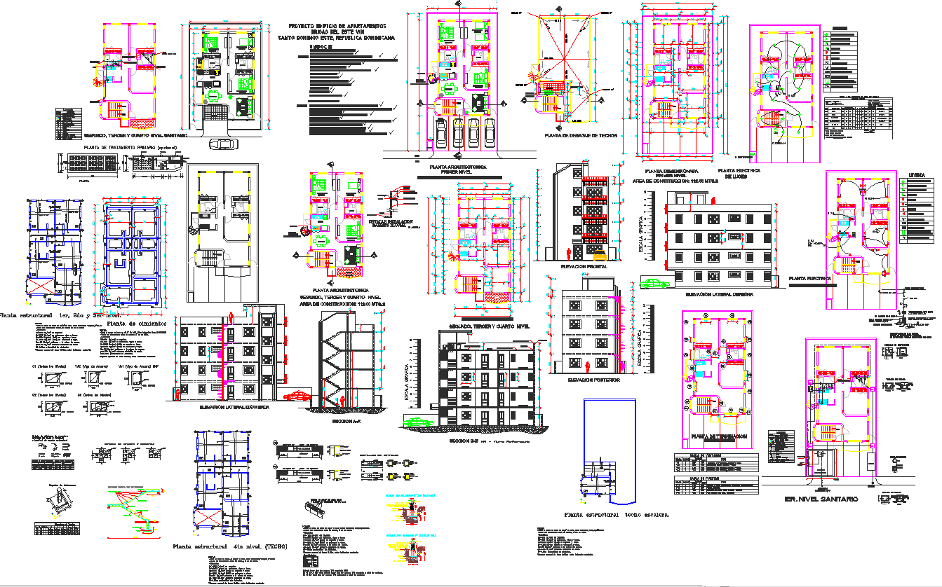 Small Apartment building architecture detail include presentaions plan, working plan, sections, elevations of apartment , steel detail, plumbing detail, rcc detail of apartment architecture projects.