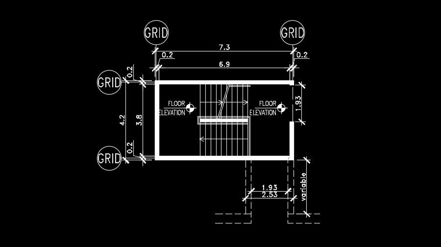 7x4m staircase plan top view is given in this AutoCAD drawing model. Measurement details are given clearly in this drawing model. For more details download the AutoCAD 2D drawing file for free.