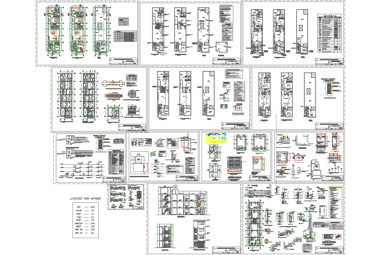 3 floor apartment architecture drawing and detail include plan, elevations, sections, working plan, elevations, and detail of architecture.