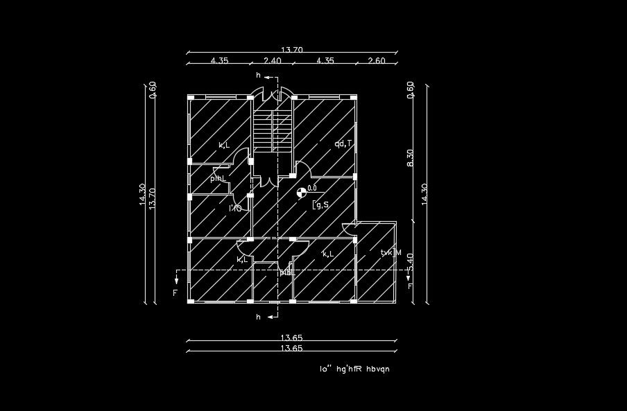 The 14x14m first floor house plan is given in this AutoCAD drawing model