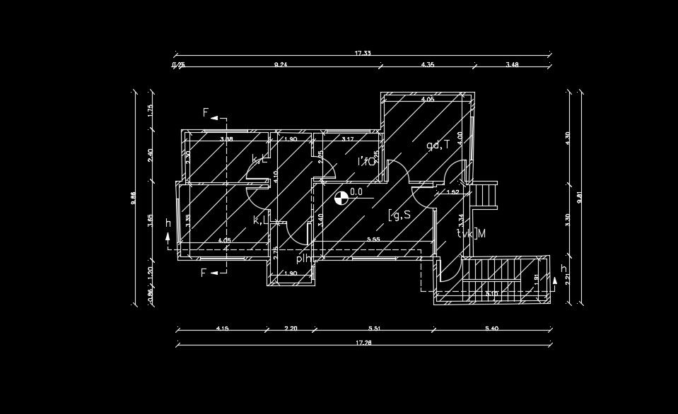 17x10m house plan is given in this AutoCAD drawing model. This is G+ 1 residential building. The hall, kitchen, store room, master bedroom, study room, and common bathroom are available. The staircase is provided inside of a home. For more details download the AutoCAD drawing model.