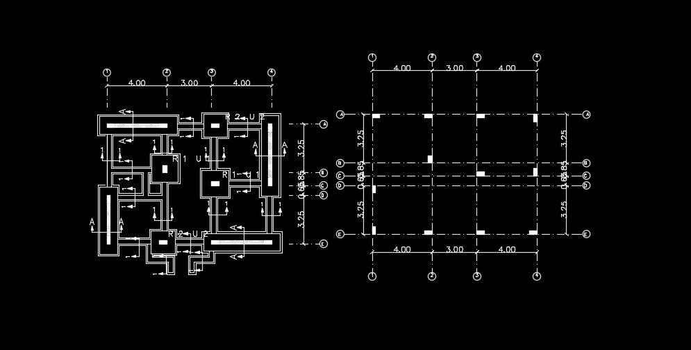 11x9m house plan foundation view is given in this AutoCAD file. The distance between each column is given in this model. Here, combined foundation also given. For more details download the AutoCAD drawing model.