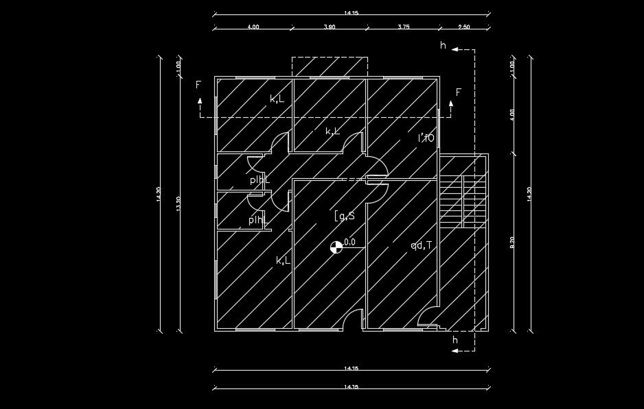 14x11m ground floor house plan AutoCAD drawing is given in this file. This is a G+ 1 house building. The living room, kitchen, master bedroom with the attached toilet, kid’s room, guest room, study room, and common bathroom are available. For more details download the AutoCAD drawing model.