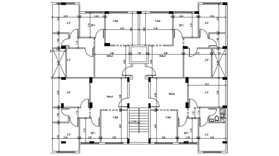 2 BHK House Plan layout shows a 15x15 meter size. 2 BHK House Plan Layout includes column placement, 2 bedrooms, living room, kitchen, dining area, and staircase is available. centerline plan is also available in this file. 2 BHK House Plan dimensions are in a meter. Thank you for downloading the AutoCAD drawing file and other CAD program files from our website. Visit CADBULL.COM Site.