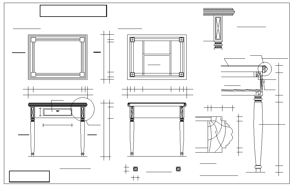 Wooden Table Detail in the cad file, Top side view, Table support detail, Front side view Etc, Detail with dimension detail also include.