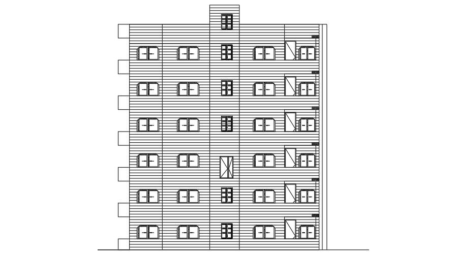 Left Side Elevation Of 25x18 meter Apartment Building DWG File shown in the file. the Left Side elevation Of the Elevation Building AutoCAD File is shown in this drawing file. The Left side elevation of the building includes window and door sizes. Thank you for downloading the AutoCAD drawing file and other CAD program files from our website. Visit CADBULL.COM Site.