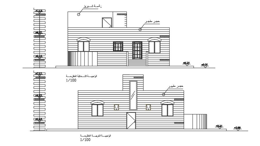 Elevations Of House Building DWG File shown in the file. the front elevation and Back Elevation Of the Elevation Building AutoCAD File are shown in this drawing file. The front elevation and back elevation of the building includes window and door sizes. Thank you for downloading the AutoCAD drawing file and other CAD program files from our website. Visit CADBULL.COM Site.