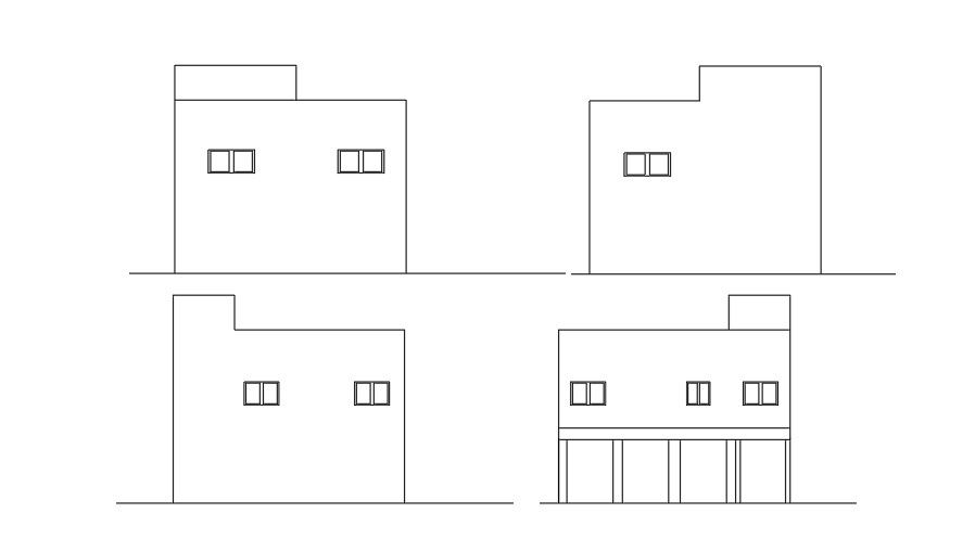 An elevation view of the 15x10 Meter house building is given in this AutoCAD drawing model. This is G+ 1 house building. Two houses are available. Each house consists of the living room, kitchen, dining area, master bedroom, guest room, and two common bathrooms are available. For more details download the AutoCAD drawing file for free.