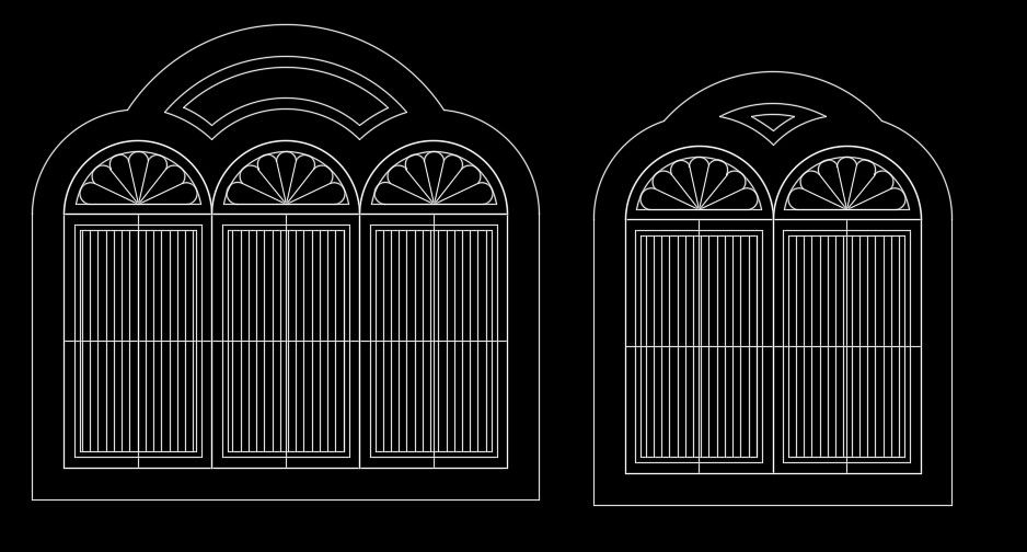 3 and 2 door opening window drawing is given in this AutoCAD model. At top, the arch is provided. For the next portion, rectangular strip design is provided. For more details download the AutoCAD drawing file.