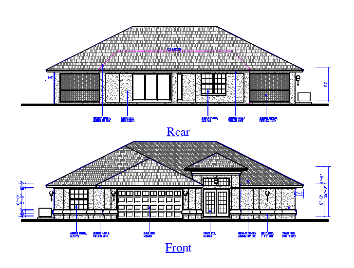 Rear & Front Side House Elevation Design in autocad drawing, Roof House Detail & other detail include.