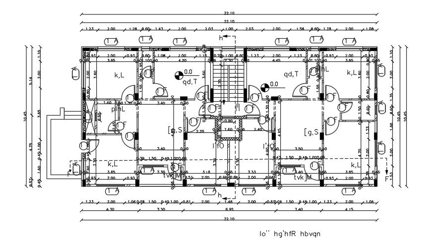 4 BHK Apartment First Plan layout shows a 22x11 meter size. 4 BHK Apartment First Plan Layout includes column placement, 4 bedrooms, living room, kitchen, dining area, and staircase is available. centerline plan is also available in this file. 4 BHK Apartment First Plan dimensions are in a meter. Thank you for downloading the AutoCAD drawing file and other CAD program files from our website. Visit CADBULL.COM Site.