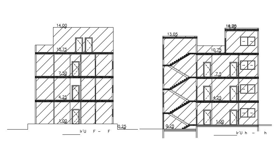 sections Of the Apartment Building AutoCAD files are shown in this drawing file. This is an Apartment -building section drawing. The sections of the Apartment building include window and door sizes and staircase sections with all dimensions. Beam depth is 0.15 Meter. levels are shown in this file. Section of Apartment building plan shows detail of ground section detail. Thank you for downloading the AutoCAD drawing file and other CAD program files from our website. Visit CADBULL.COM Site.