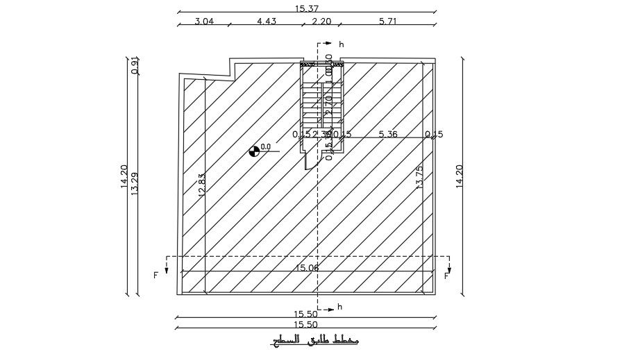 The roof layout of the 15x15m home plan drawing is given in this file. The length and breadth of the house plans are 15.37m and 14.20m respectively. For more details download the AutoCAD file from our website.