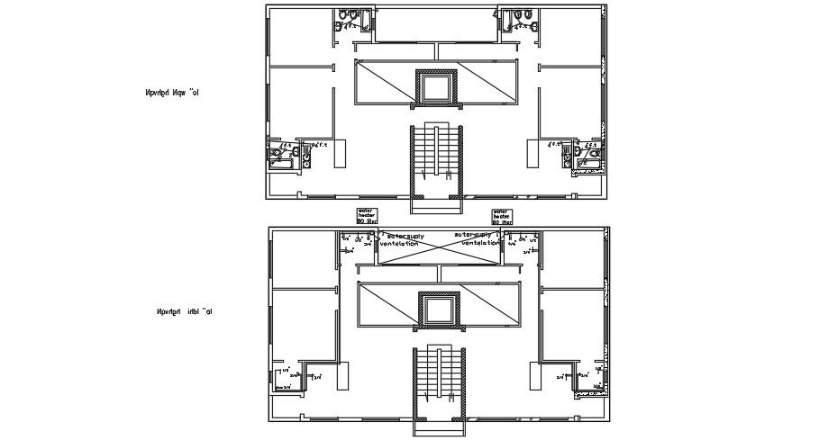25x10m first floor house plan of the water line connections are given in this AutoCAD file. Two bathrooms are available on each house. Water lines are provided for the kitchen. For more details download the AutoCAD file from our website.