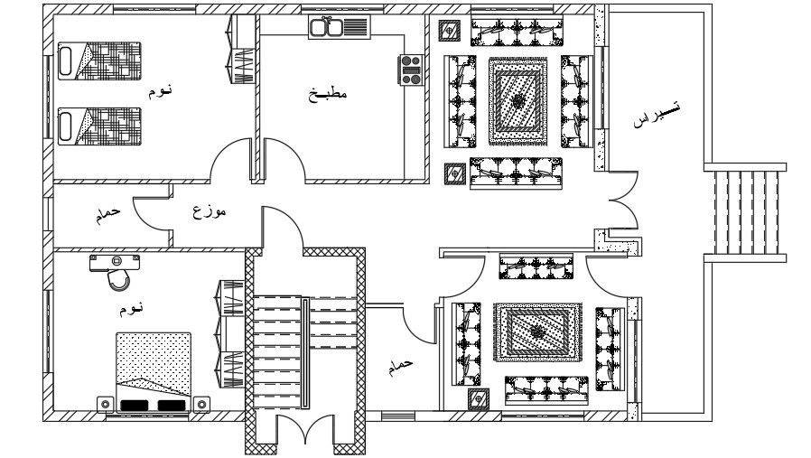 The furniture’s layout of the 16x10m architecture house plan drawing is given in this AutoCAD model. The living room, kitchen, dining area, master bedroom, kid’s room, and common bathroom are available. For more details download the AutoCAD drawing file from our website.