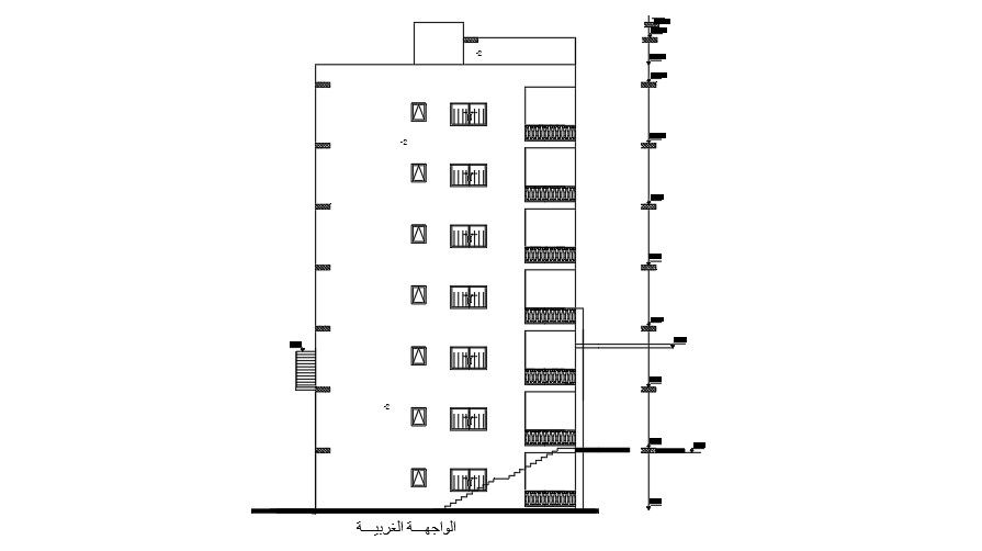 The right-side elevation view of the 24x14m house building is given in this AutoCAD model. This is G+ 6 apartment building. The height of the building is 20 m. Windows are given in this model. For more details download the AutoCAD file from our website.