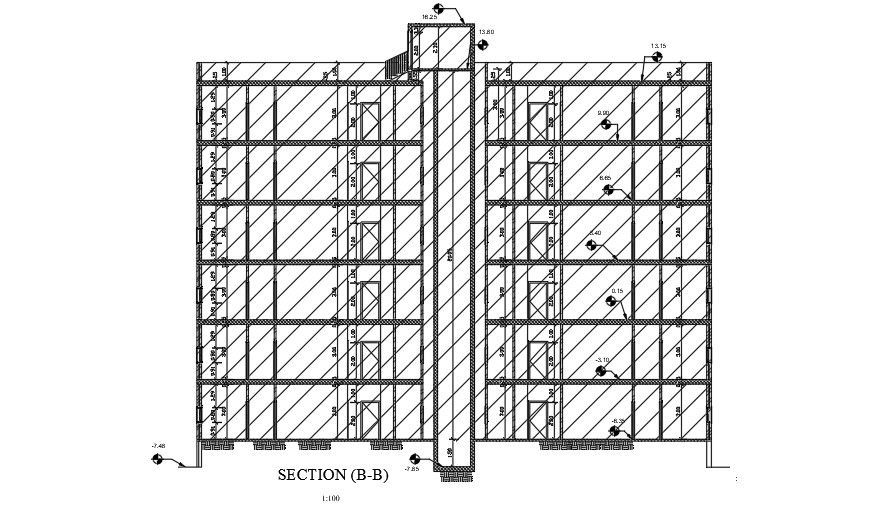 A section view of the 29x18m Apartment building is given in this AutoCAD model. This is G+ 5 house building. The front and back side section views are given. For more details visit our website.