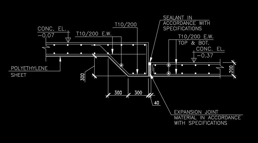 The expansion joint detail of the beam is given in this AutoCAD model. Measurement details and reinforcement details are given in this model clearly. For more details download the AutoCAD 2D drawing file for free.