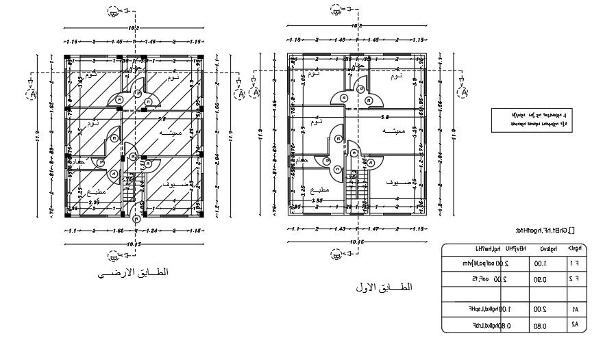 10x12m two story residential plan detail drawing is given in this AutoCAD model. This is G+ 1 house building with the height of 9.25m. The living room, guest room, kitchen, family lounge area, master bedroom, kid’s room, and common bathrooms are available. For more details download the AutoCAD drawing file.