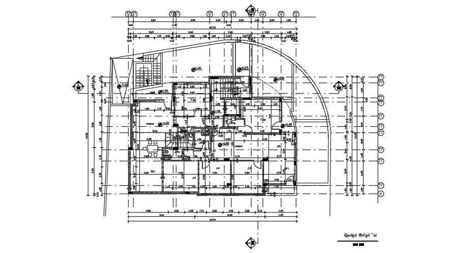The apartment's First Floor Plan layout shows a 20x15 meter size. Apartment First Floor Plan Layout includes column placement, 4 bedrooms, living room, kitchen, dining area, and staircase is available. centerline plan is also available in this file. Apartment First Floor Plan dimensions are in a meter. Thank you for downloading the AutoCAD drawing file and other CAD program files from our website. Visit CADBULL.COM Site.