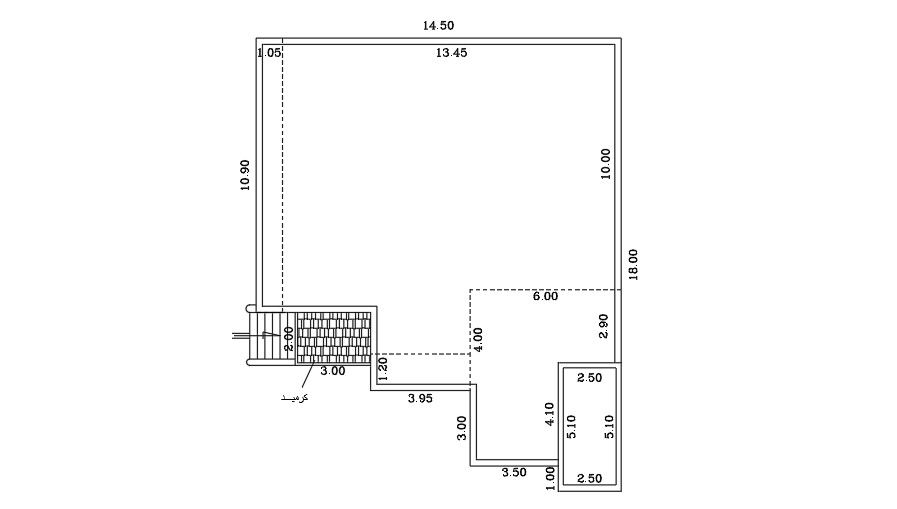 15x18m house plan layout drawing is given in this AutoCAD model. In this plan, the staircase location is given. For more details download the AutoCAD file.