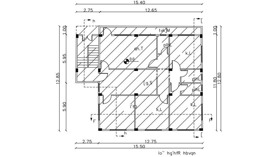 15x13m first floor house plan is given in this AutoCAD model. The living room, kitchen, master bedroom with the attached toilet, guest room, kid’s room, and common bathroom are available. For more details download the AutoCAD file.