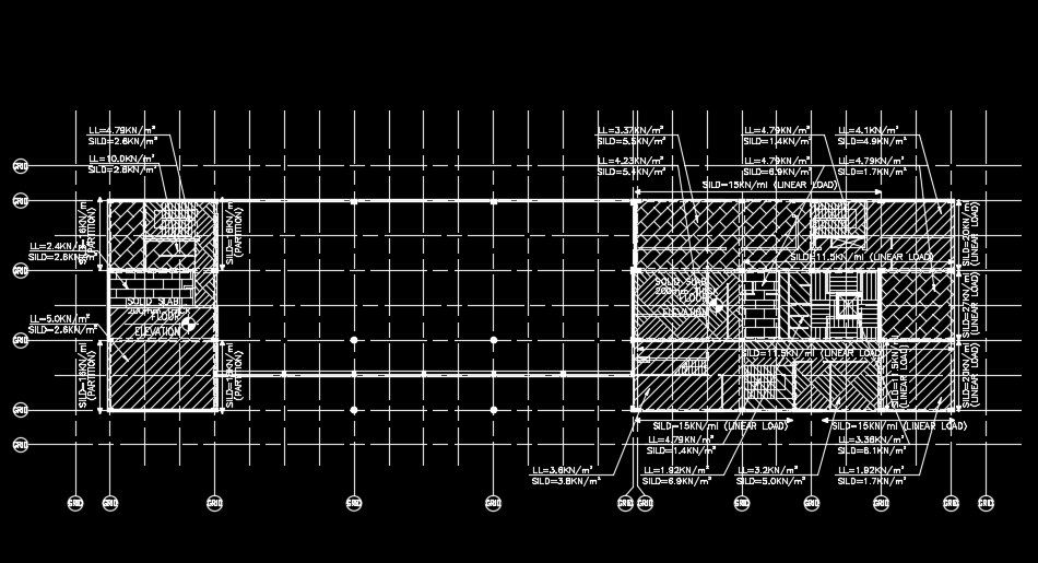 73x18m mosque floor load applying detail drawing is given in this file. Thickness of the solid slab is 200mm. Live load, slid load, and dead loads are mentioned. For more details download the AutoCAD drawing file from our website.