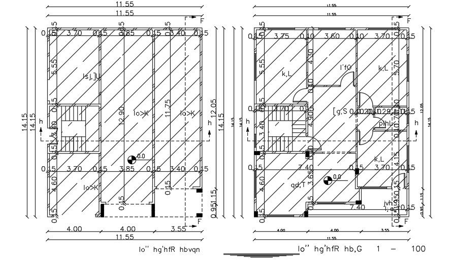 11x15m ground floor and first floor AutoCAD 2D house plan