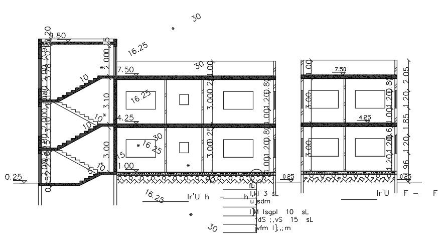A section view of the 16x11m house building is given in this AutoCAD file. This is G+ 1 house building. The living room, kitchen, dining area, master bedroom, common toilet, kid’s room and common bathroom are available on this first floor. For more details download the AutoCAD drawing file from our website.