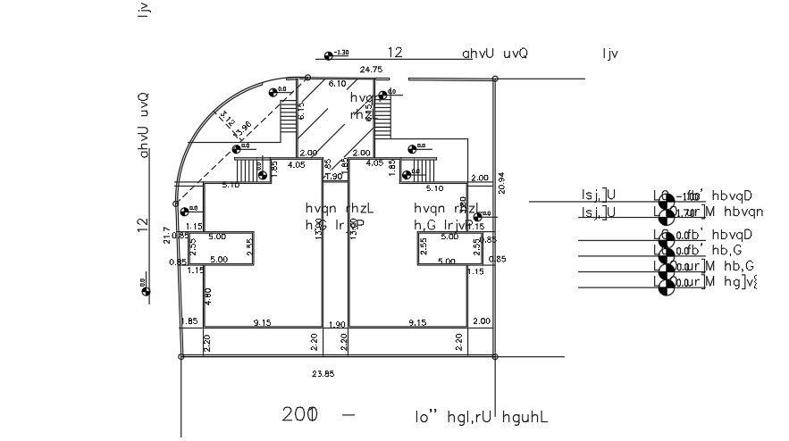24x21m residential site layout 2D drawing is given in this file. Two houses are available on this plan. For more details download the AutoCAD drawing file from our website.