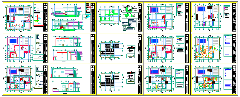 Here the Single family house of 3BHK 3150 Sq Ft. layout design with center line layout,elevation design,section drawing, furniture layout design in this auto cad file.