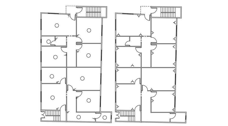The light and switch point location is given for the 12x22m house plan in this AutoCAD file. These are provided for the living room, kitchen, master bedroom, kid’s room, and common bathrooms. For more details download the AutoCAD drawing file from our website.