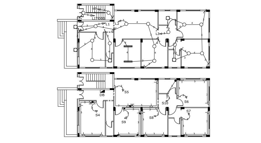 The electrical layout of the 20x9m house plan drawing is given in this AutoCAD model. This is a single story house building. The water lines are provided for the kitchen, attached bathroom, and common bathrooms. For more details download the AutoCAD drawing file.