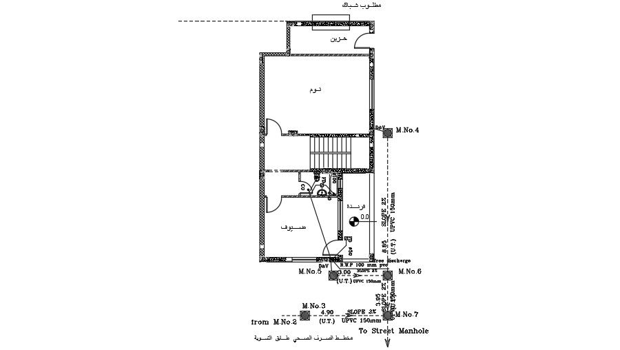 8x16m ground floor house plan sanitary water line dimension drawing is given in this AutoCAD model. Bath pipe, water closet, bidet, and basin diameters are mentioned. For more details download the AutoCAD drawing file.