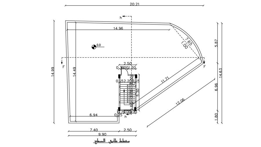 20x15m house plan roof layout drawing is given in this AutoCAD file. The length and breadth of the staircase is 5.3m and 2.5m. For more details download the AutoCAD drawing file.