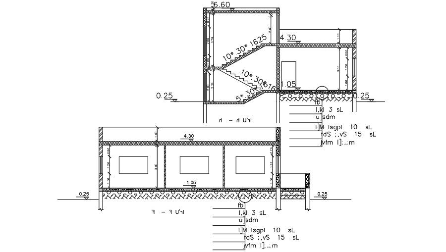 A section view of the 17x11m house building drawing is given in this AutoCAD file. The height of the building is 6.6m. The living room, kitchen, master bedroom, guest room, kid’s room, dining area, and common bathroom are available. For more details download the AutoCAD drawing file.