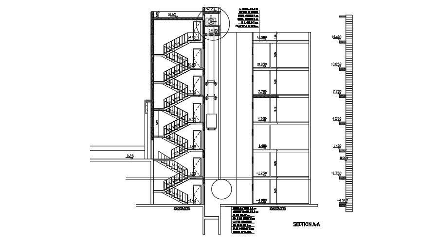 A section view of the 25x21m apartment staircase view is given in this AutoCAD file. The total height of the building is 17.35m. This is G+ 4 apartment building. The living room, master bedroom with the attached, guest room, two kid’s room, kitchen, dining area, and common bathroom are available. For more details download the AutoCAD drawing file.