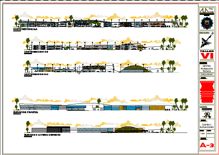 Here the Technical school and vocational training center design drawing elevation design drawing in this auto cad file.