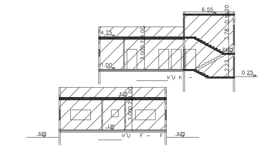 A section view of the 14x11m house building is given in this file. The height of the building is 6.55m. This is a single story house building. The living room, kitchen, dining area, master bedroom with the attached toilet, kid’s room, guest room, and common bathroom are available. For more details download the AutoCAD drawing file.