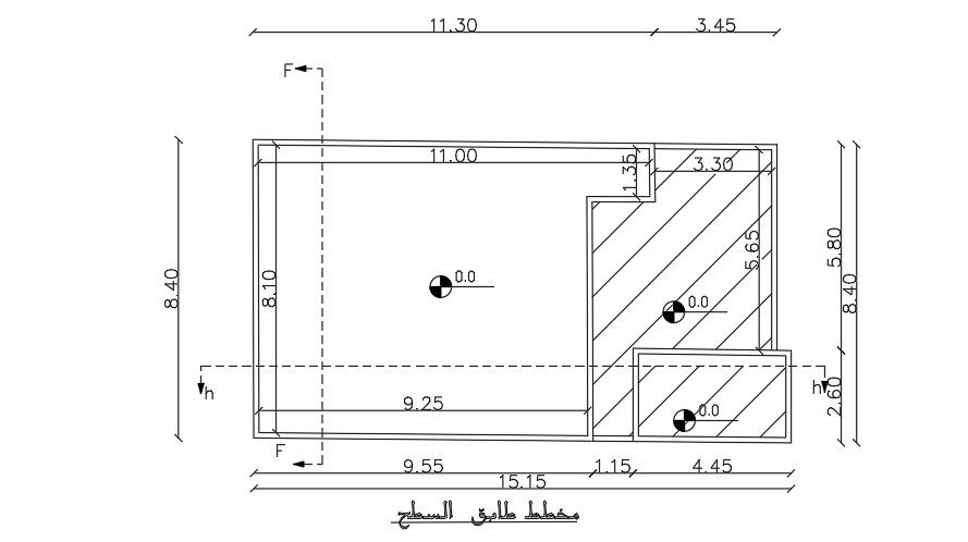 16x8m roof floor house plan layout drawing is given in this AutoCAD file. A water tank is provided. For more details download the AutoCAD drawing file.