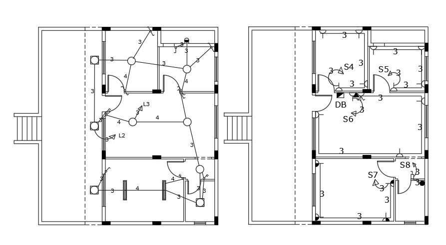 8x12m house plan of the switch point and light fixing drawing is given in this AutoCAD file. The living room, kitchen, master bedroom, kid’s room, and common bathroom are available. For more details download the AutoCAD drawing file.
