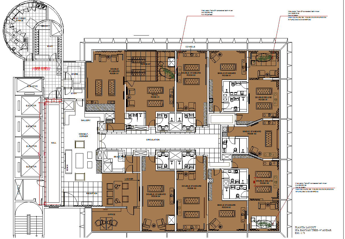Spa massage center interiors layout dwg cad drawing, Include furniture placement of spa, floor plan, and constructions detail of spa.