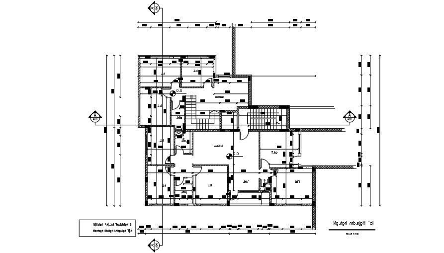18x16m third floor house plan is given in this AutoCAD file. Two houses are available on each floor. The living room, kitchen, dining area, family lounge, master bedroom, guest room, kid’s room, and two common bathrooms are available. For more details download the AutoCAD drawing file.