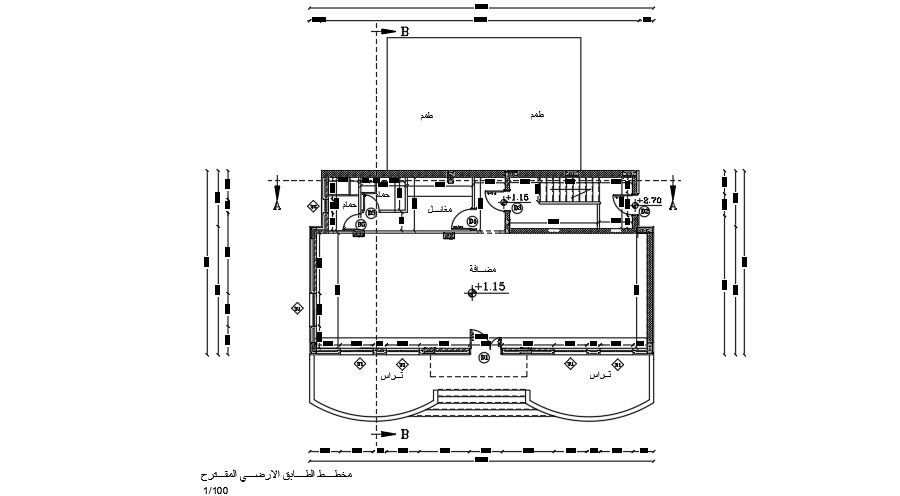 15x8m ground floor house plan layout is given in this AutoCAD file. The living room, wash basin area, and toilet are available. For more details download the AutoCAD drawing file.