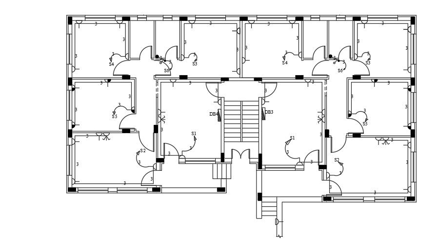 23x12m first floor house switch point location drawing is given in this AutoCAD file. The living room, kitchen, dining area, master bedroom with the attached toilet, kid’s room, and common bathroom are available. For more details download the AutoCAD drawing file.